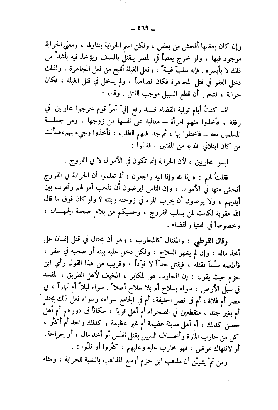 ومن ثم يتبين أن مذهب ابن حزم وأسع المذاهب بالنسبة للحرابة، ومثله