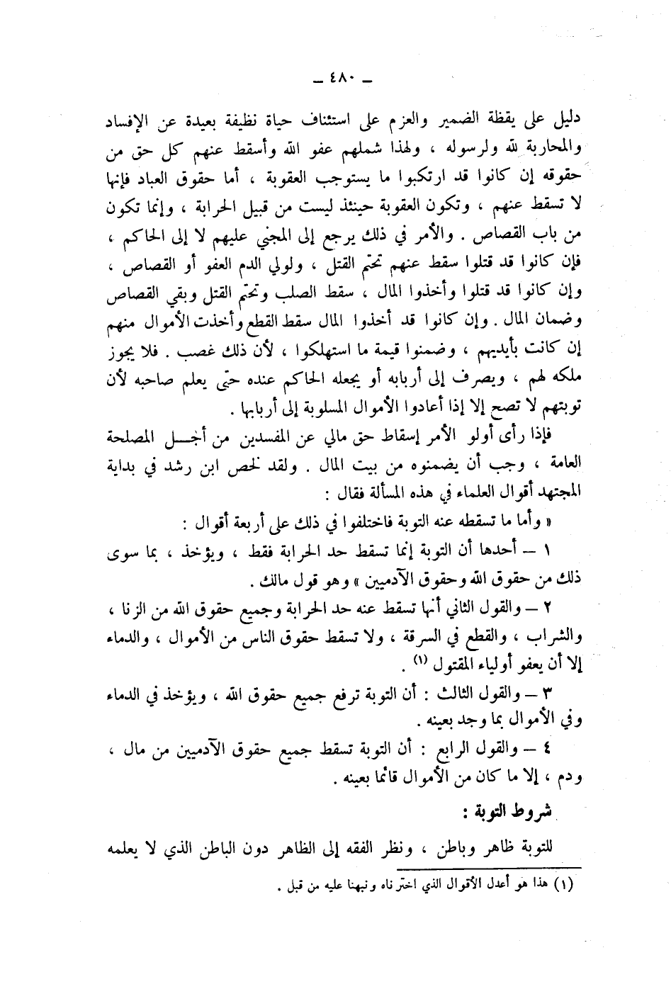 شروط التوبة: للتوبة ظاهر وباطن، ونظر الفقه إلى الظاهر دون الباطن الذي لا يعلمه