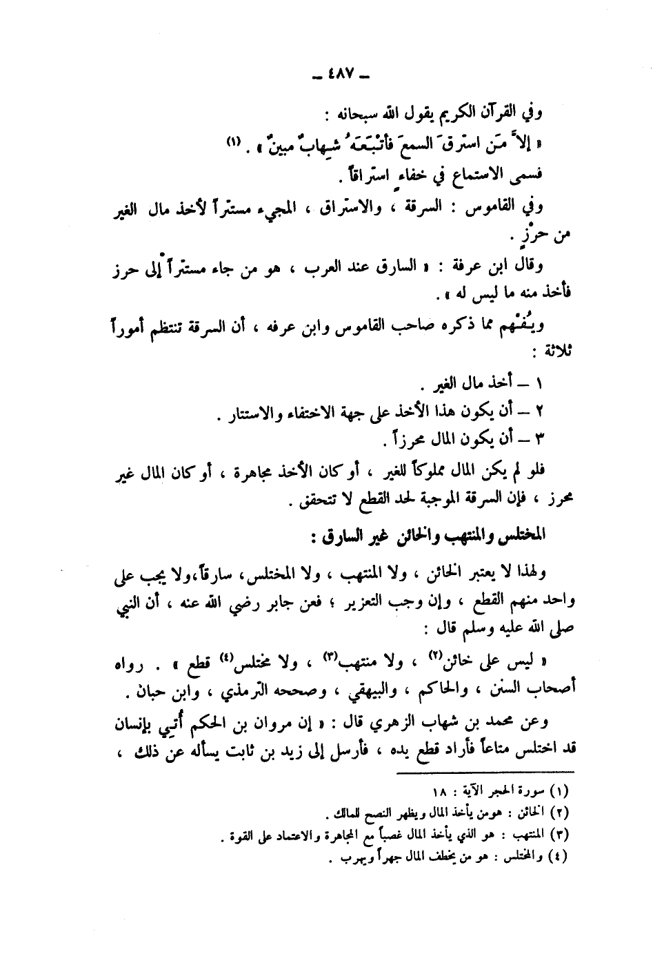 المختلس والمنتهب والخائن غير السارق: ولهذا لا يعتبر الخائن، ولا المنتهب، ولا المختلس، سارقا، ولا يجب على واحد منهم القطع، وإن وجب التعزير، فعن جابر رضي الله عنه، أن النبي صلى الله عليه وسلم قال: " ليس على خائن (2) ، ولا منتهب (3) ، ولا مختلس (4) قطع ".