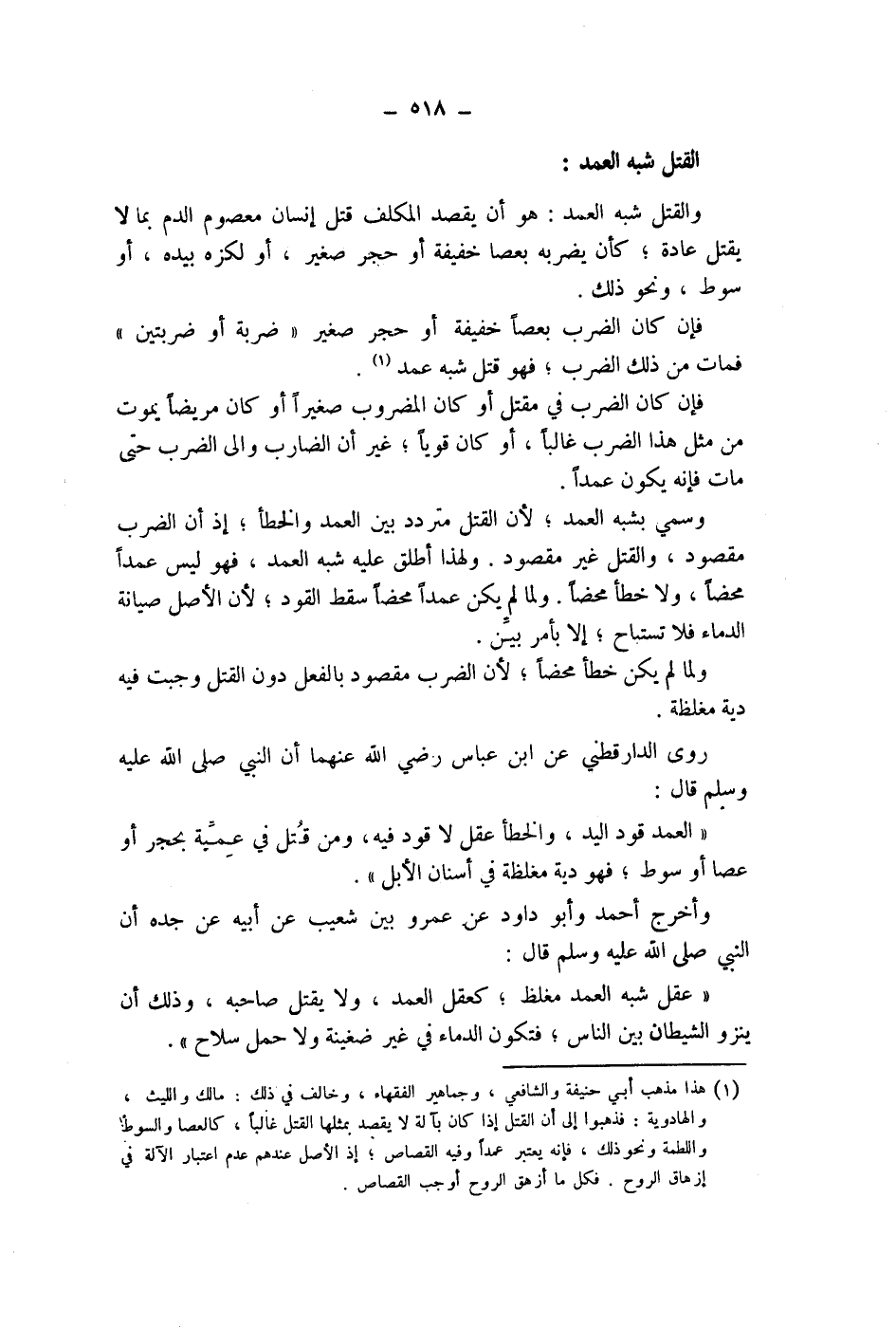 القتل شبه العمد: والقتل شبه العمد: هو أن يقصد المكلف قتل إنسان معصوم الدم بما لا يقتل عادة، كأن يضربه بعصا خفيفة أو حجر صغير، أو لكزه بيده، أو سوط ونحو ذلك.