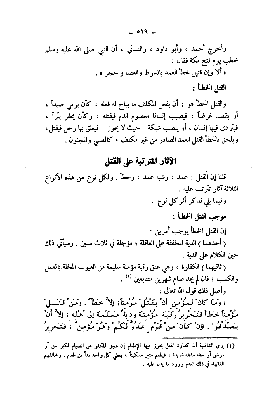 وأصل ذلك قول الله تعالى: " وما كان لمؤمن أن يقتل مؤمنا، إلا خطأ.