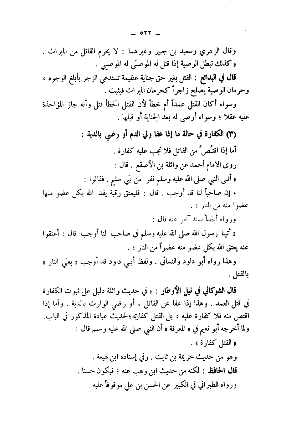 قال الشوكاني في نيل الاوطار: " في حديث وائلة دليل على ثبوت الكفارة في قتل العمد.