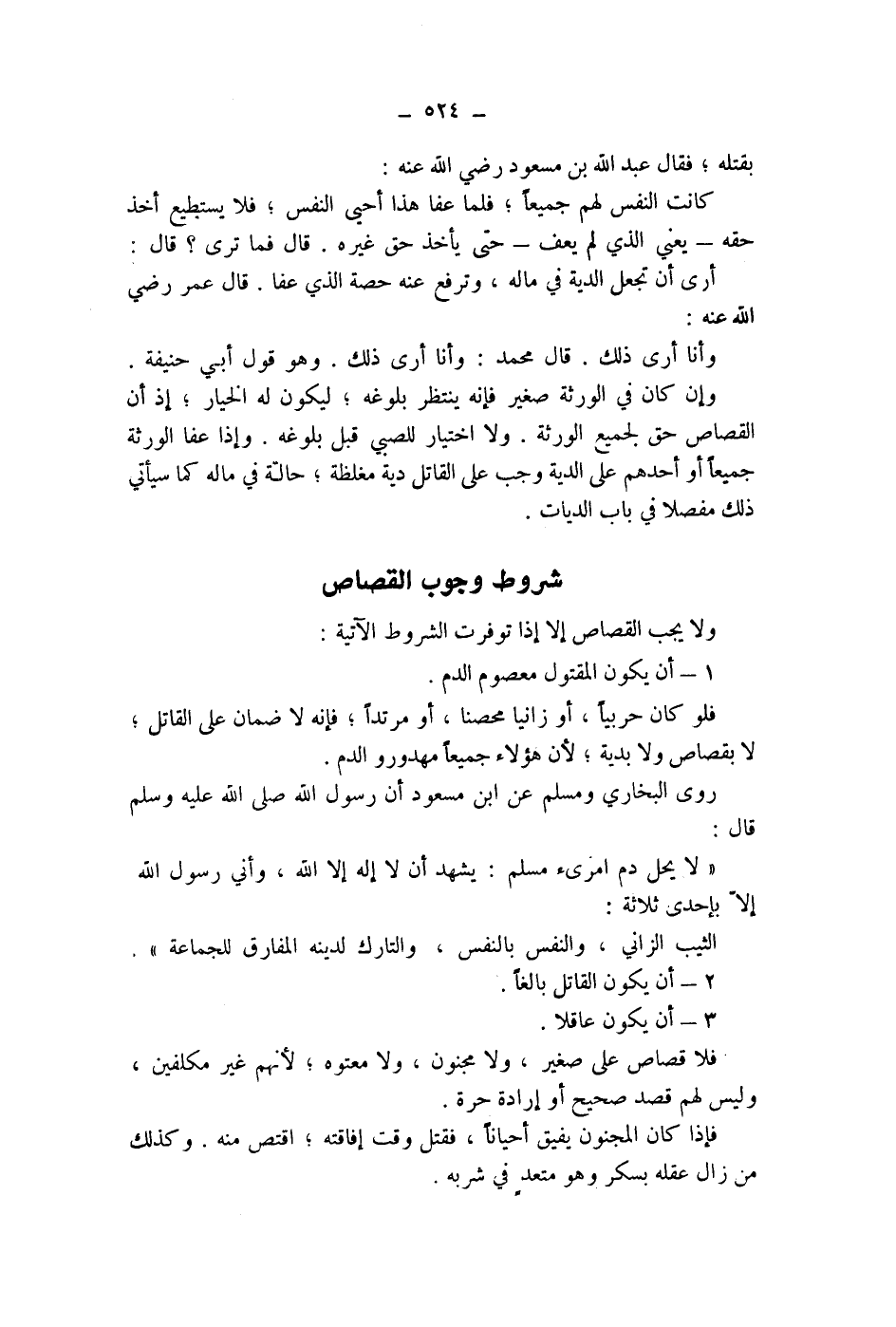 ولا يجب القصاص إلا إذا توفرت الشروط الآتية: 1 - أن يكون المقتول معصوم الدم.