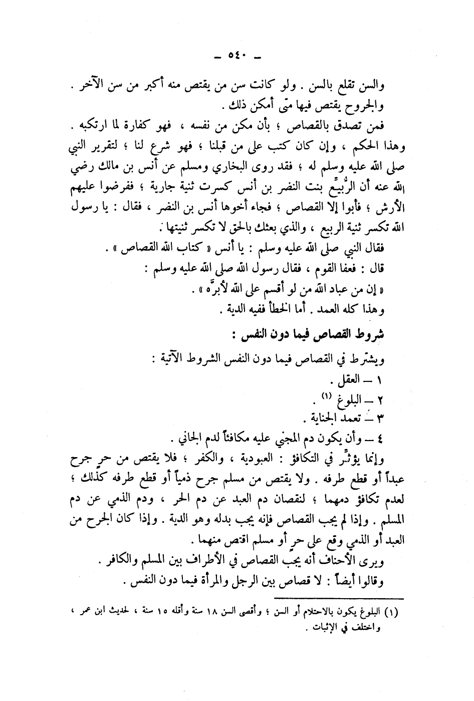 ويشترط في القصاص فيما دون النفس الشروط الآتية: