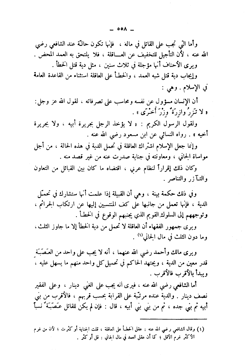وإيجاب دية قتل شبه العمد، والخطأ على العاقلة استثناء من القاعدة العامة في الاسلام.