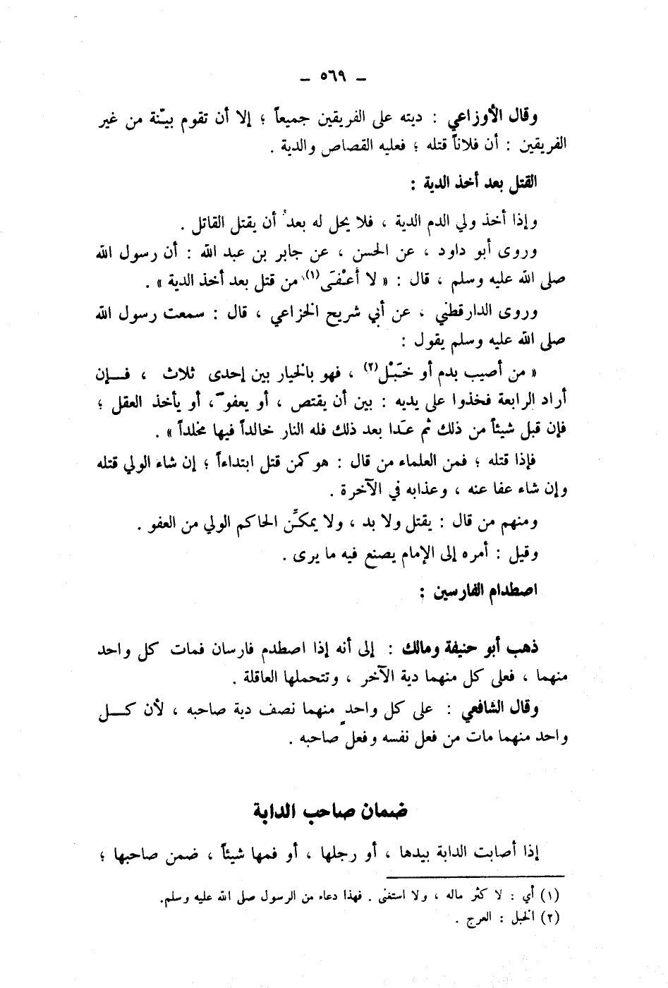وروى الدارقطني، عن أبي شريح الخزاعي، قال: سمعت رسول الله صلى الله عليه وسلم يقول: " من أصيب بدم أو خبل (2) ، فهو بالخيار بين إحدى ثلاث، فإن أراد الرابعة فخذوا على يديه: بين أن يقتص، أو يعفو، أو يأخذ العقل، فإن قبل شيئا من ذلك ثم عدا بعد ذلك فله النار خالدا فيها مخلدا ".