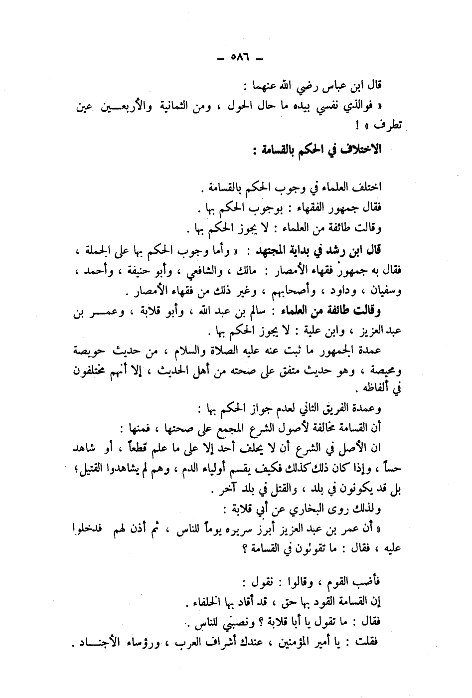 " فوالذي نفسي بيده ما حال الحول، ومن الثمانية والاربعين عين تطرف "! الاختلاف في الحكم بالقسامة: اختلف العلماء في وجوب الحكم بالقسامة.