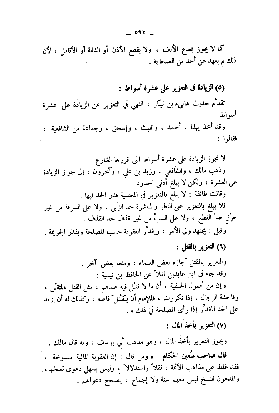 (6) التعزير بالقتل: والتعزير بالقتل أجازه بعض العلماء، ومنعه بعض آخر.