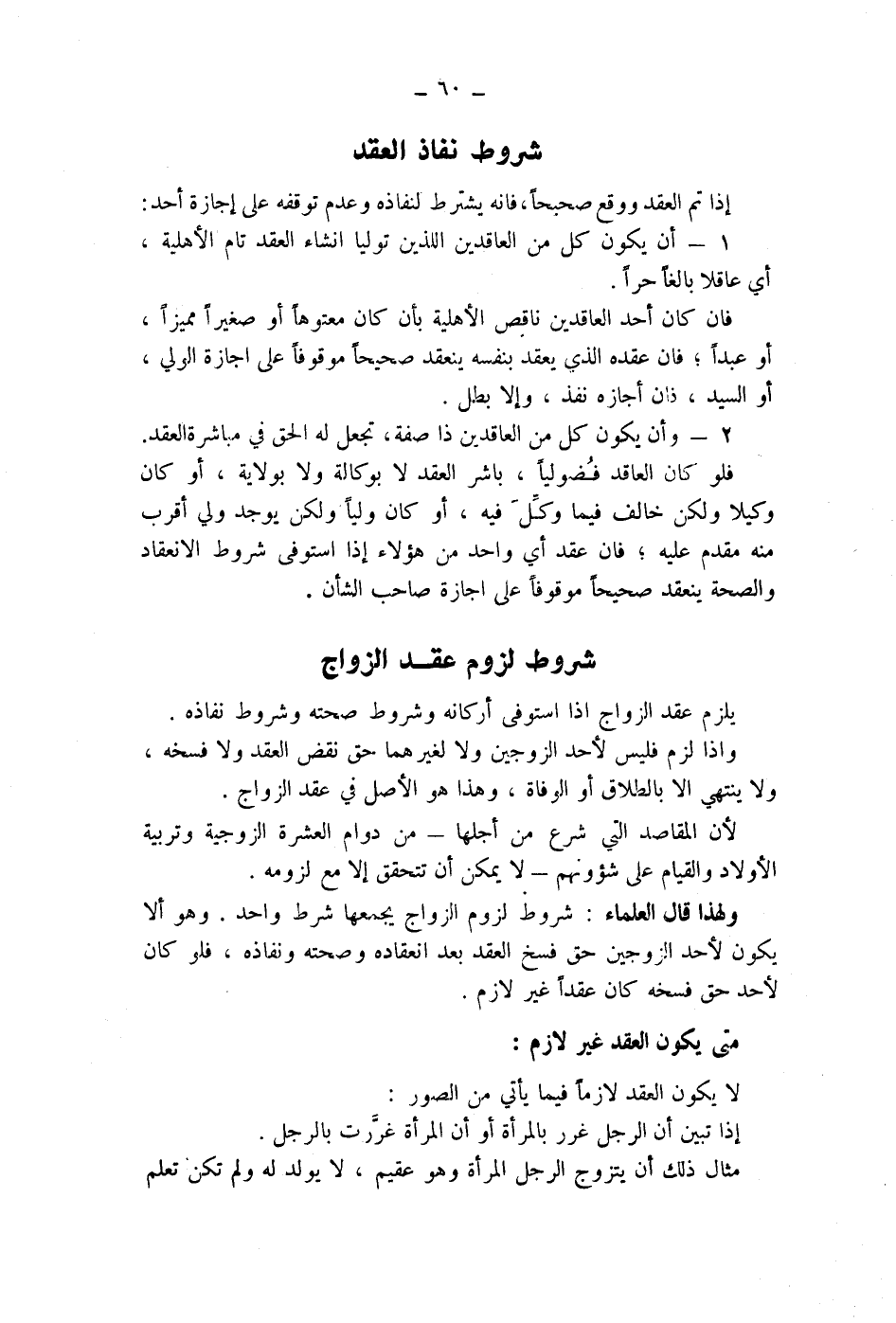 وإذا لزم فليس لاحد الزوجين ولا لغيرهما حق نقض العقد ولا فسخه، ولا ينتهي الا بالطلاق أو الوفاة، وهذا هو الاصل في عقد الزواج.
