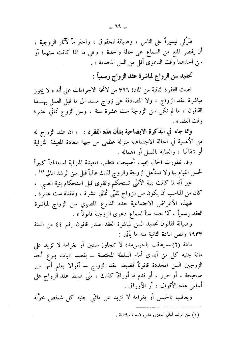 ومما جاء في المذكرة الايضاحية بشأن هذه الفقرة: " ان عقد الزواج له من الاهمية في الحالة الاجتماعية منزلة عظمي من جهة سعادة المعيشة المنزلية أو شقائها، والعناية بالنسل أو اهماله.