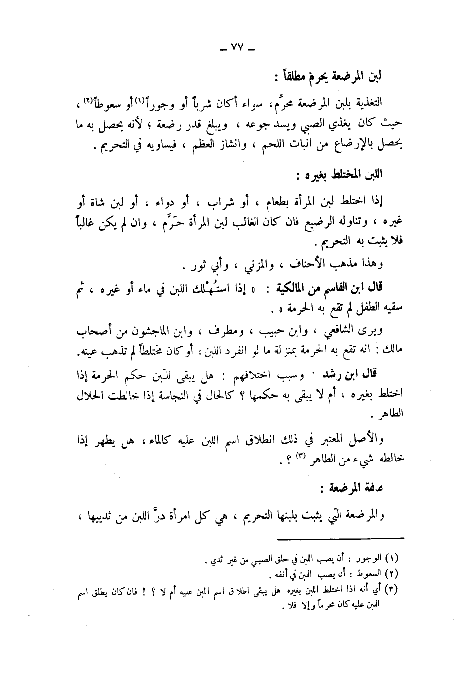 (3) أي أنه إذا اختلط اللبن بغيره هل يبقى اطلاق اسم اللبن عليه أم لا؟! فان كان يطلق اسم اللبن عليه كان محرما وإلا فلا
