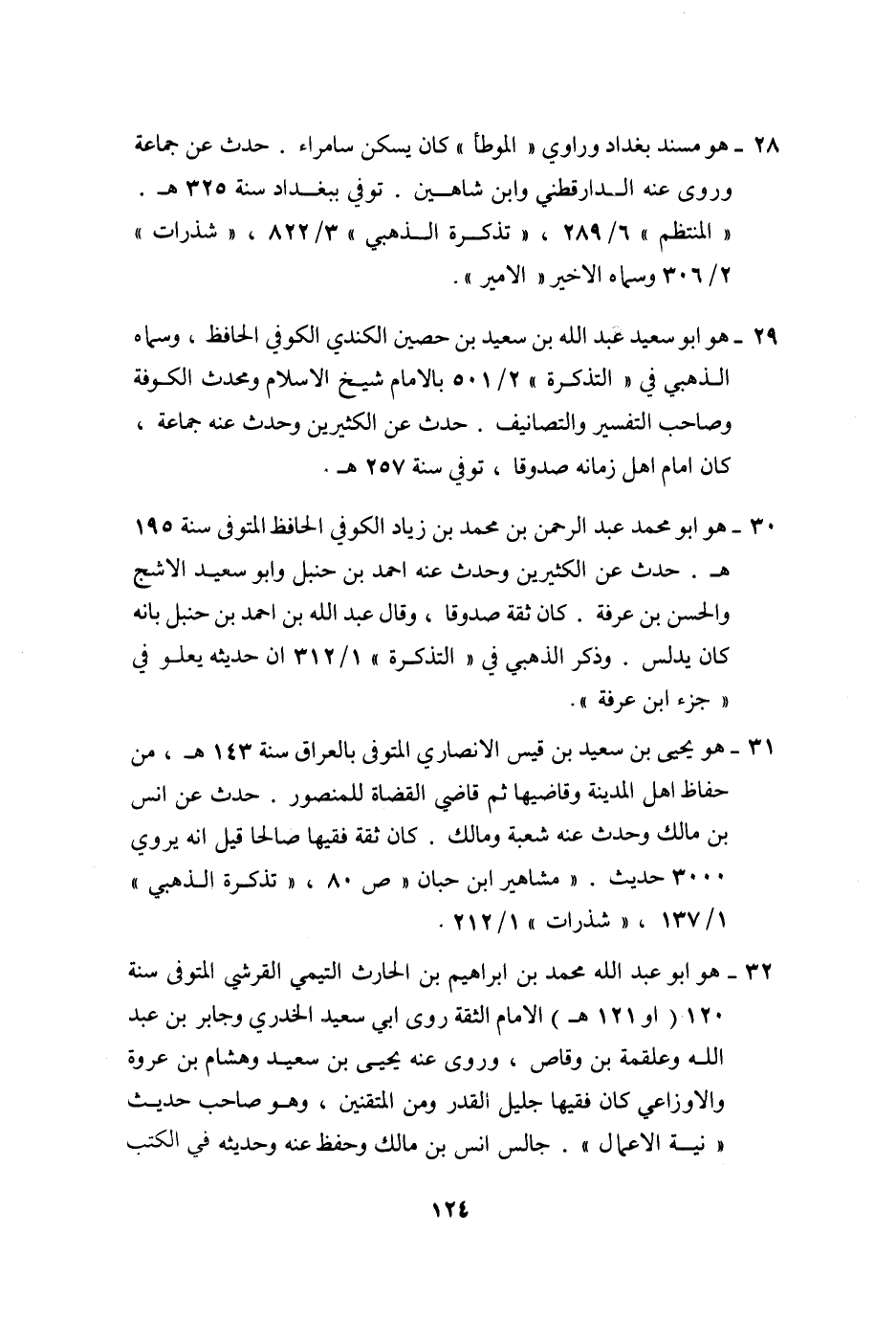 31- هو يحيى بن سعيد بن قيس الانصاري المتوفى بالعراق سنة 143 هـ، من حفاظ اهل المدينة وقاضيها ثم قاضي القضاة للمنصور. حدث عن انس بن مالك وحدث عنه شعبة ومالك. كان ثقة فقيها صالحا قيل انه يروي 3000 حديث. «مشاهير ابن حبان» ص 80، «تذكرة الذهبي» 1/137، «شذرات» 1/212.