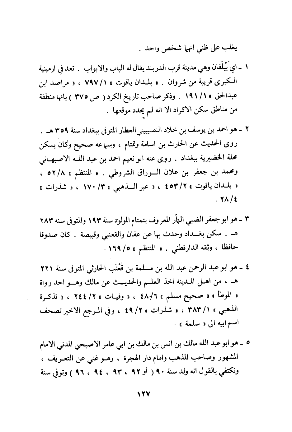 4- هو ابو عبد الرحمن عبد الله بن مسلمة بن قعنب الحارثي المتوفى سنة 221 هـ، من اهل المدينة اخذ العلم والحديث عن مالك وهو احد رواة «الموطأ» «صحيح مسلم» 6/48، «وفيات» 2/244، «تذكرة الذهبي» 1/383، «شذرات» 2/49، وفي المرجع الاخير تصحف اسم ابيه الى «سلمة» .
