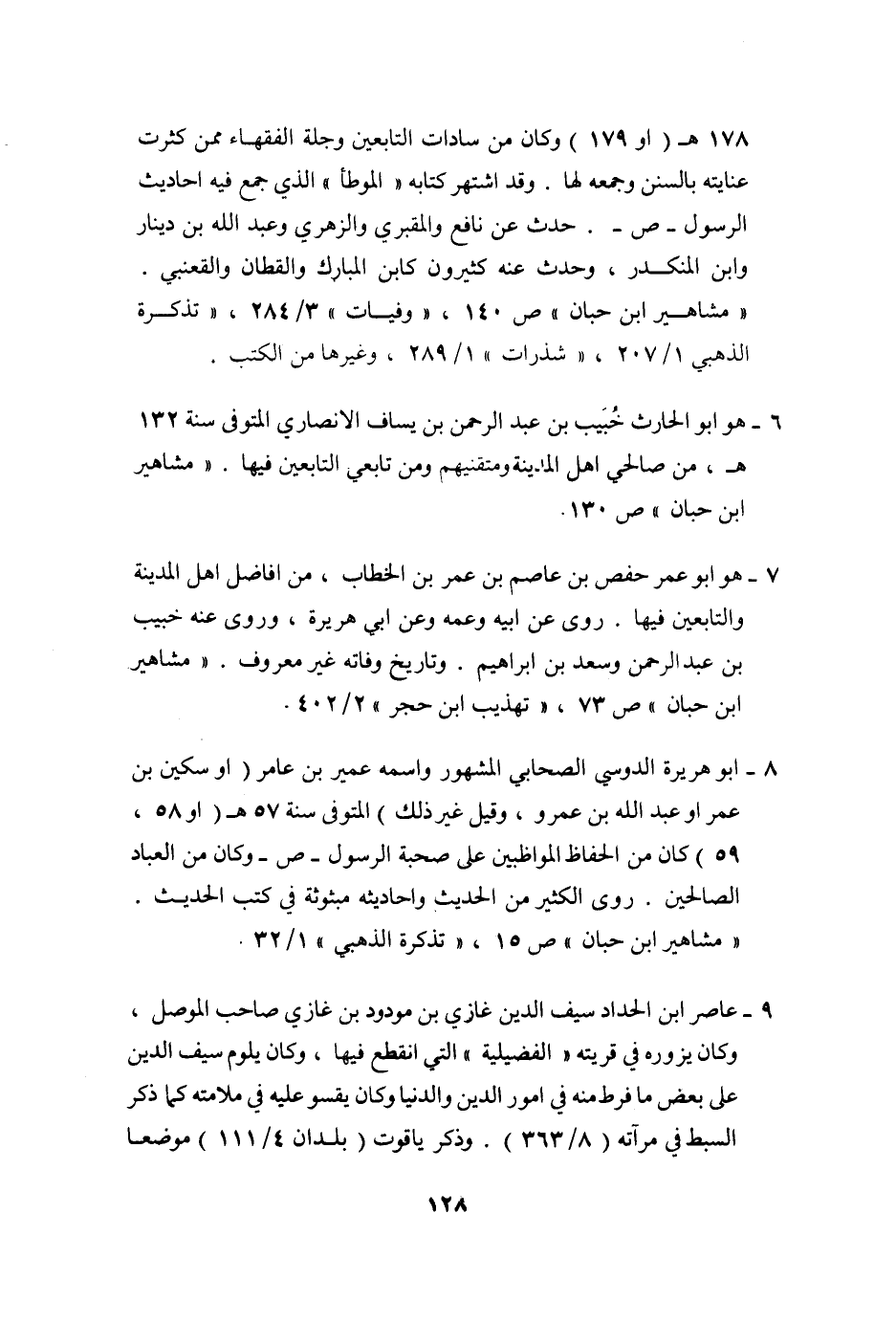 6- هو ابو الحارث خبيب بن عبد الرحمن بن يساف الانصاري المتوفى سنة 132 هـ، من صالحي اهل المدينة ومتقنيهم ومن تابعي التابعين فيها. «مشاهير ابن حبان» ص 130.