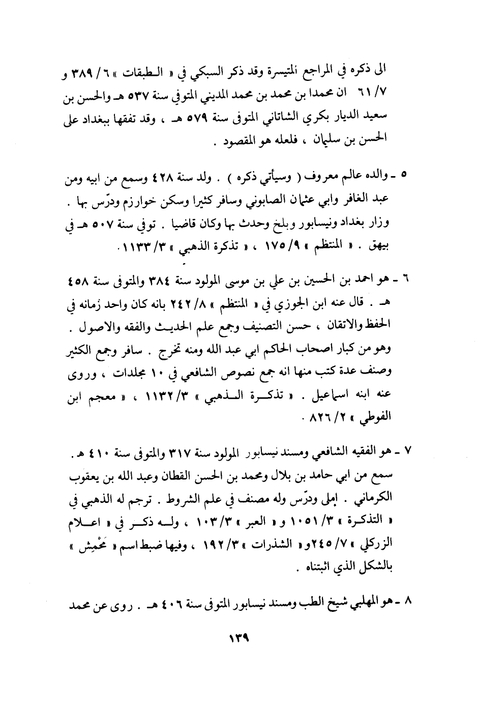 7- هو الفقيه الشافعي ومسند نيسابور المولود سنة 317 والمتوفى سنة 410 هـ.