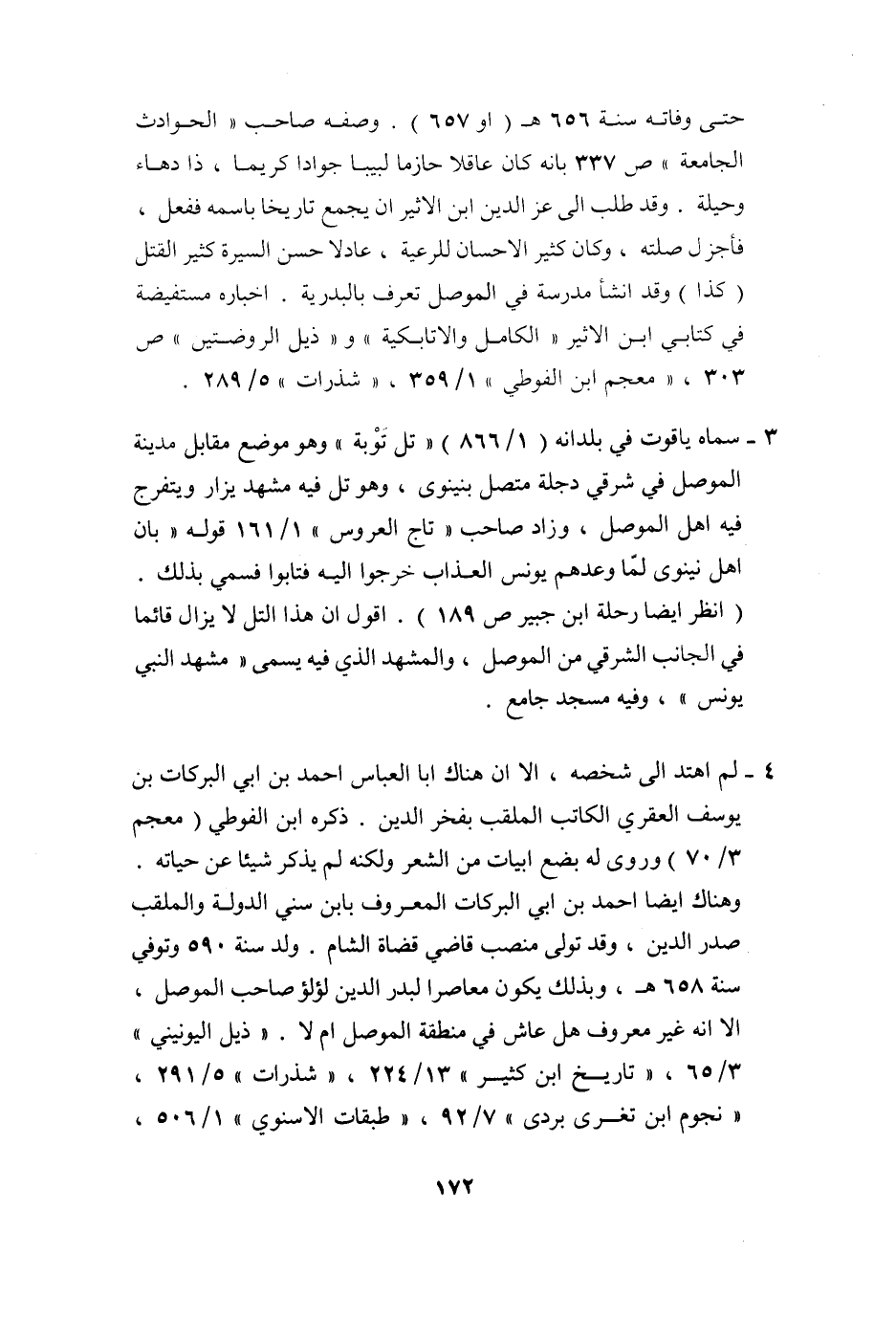 (انظر ايضا رحلة ابن جبير ص 189) . اقول ان هذا التل لا يزال قائما في الجانب الشرقي من الموصل، والمشهد الذي فيه يسمى «مشهد النبي يونس» ، وفيه مسجد جامع.