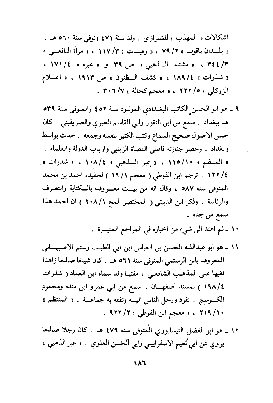 12- هو ابو الفضل النيسابوري المتوفى سنة 479 هـ. كان رجلا صالحا يروي عن ابي نعيم الاسفراييني وابي الحسن العلوي. «عبر الذهبي»