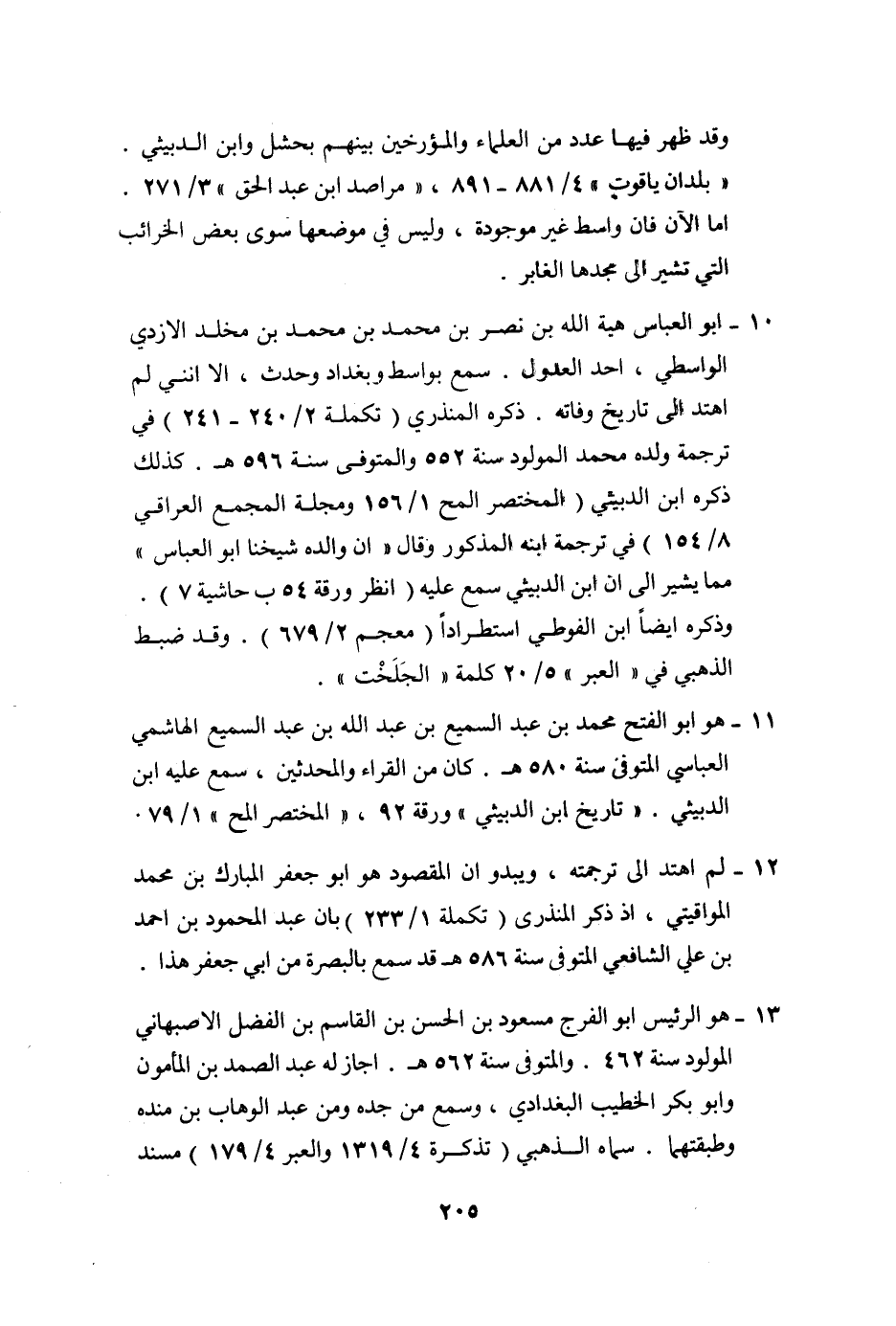 10- ابو العباس هبة الله بن نصر بن محمد بن محمد بن مخلد الازدي الواسطي، احد العدول. سمع بواسط وبغداد وحدث، الا انني لم اهتد الى تاريخ وفاته. ذكره المنذري (تكملة 2/240- 241) في ترجمة ولده محمد المولود سنة 552 والمتوفى سنة 596 هـ. كذلك ذكره ابن الدبيثي (المختصر المح 1/156 ومجلة المجمع العراقي 8/154) في ترجمة ابنه المذكور وقال «ان والده شيخنا ابو العباس» مما يشير الى ان ابن الدبيثي سمع عليه (انظر ورقة 54 ب حاشية 7) .