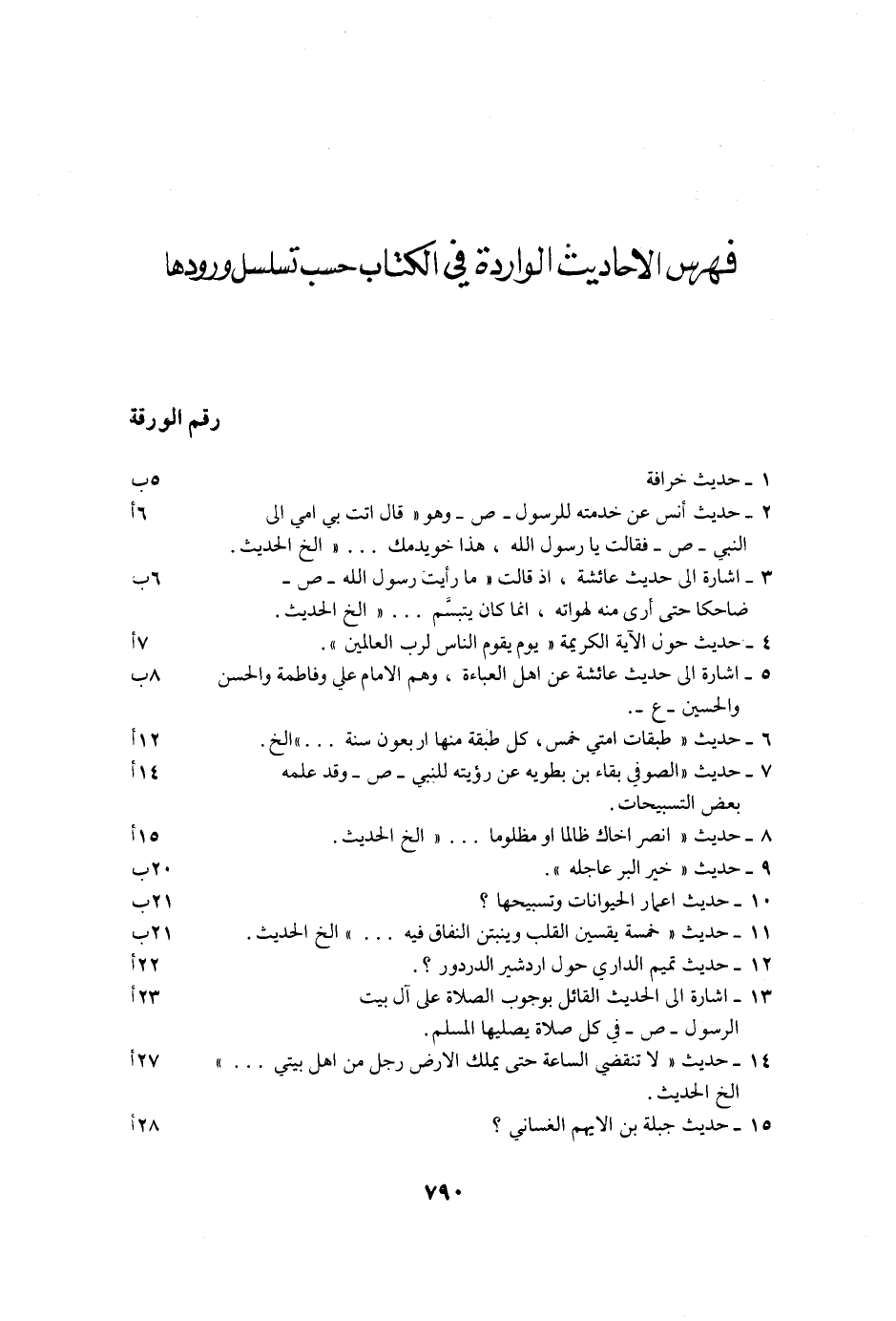 فهرس الاحاديث الواردة في الكتاب حسب تسلسل ورودها