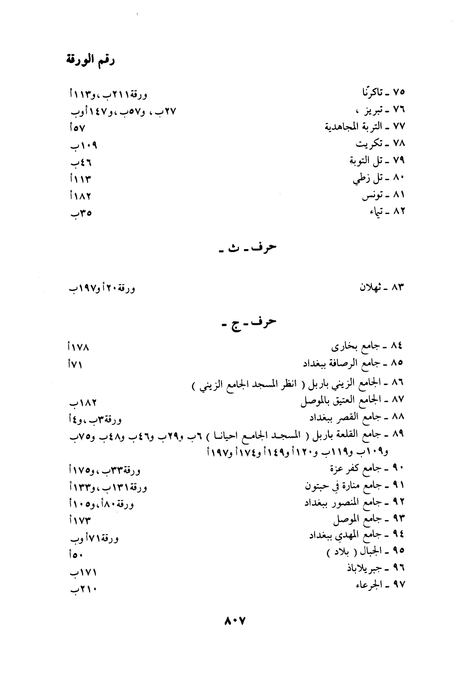 89- جامع القلعة باربل (المسجد الجامع احيانا) 6 ب و 29 ب و 46 ب و 48 ب و 75 ب و 109 ب و 119 ب و 120 أو 149 أو 174 أو 197 أ