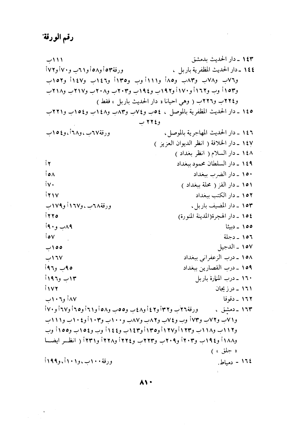 163- دمشق، ورقة 26 ب و 32 أو 42 أو 48 ب و 55 ب و 58 أو 61 أو 65 أو 67 أو 70 أو 71 ب و 72 ب و 73 أوب و 74 ب و 82 ب و 87 ب و 100 ب و 103 أو 104 ب و 111 ب و 112 ب و 118 ب و 123 أو 127 أو 135 أو 143 ب و 144 أوب و 154 ب و 155 أوب و 188 أو 194 ب و 203 أو 209 ب و 223 ب و 224 أو 228 أو 231 أ (انظر ايضا «جلق» )