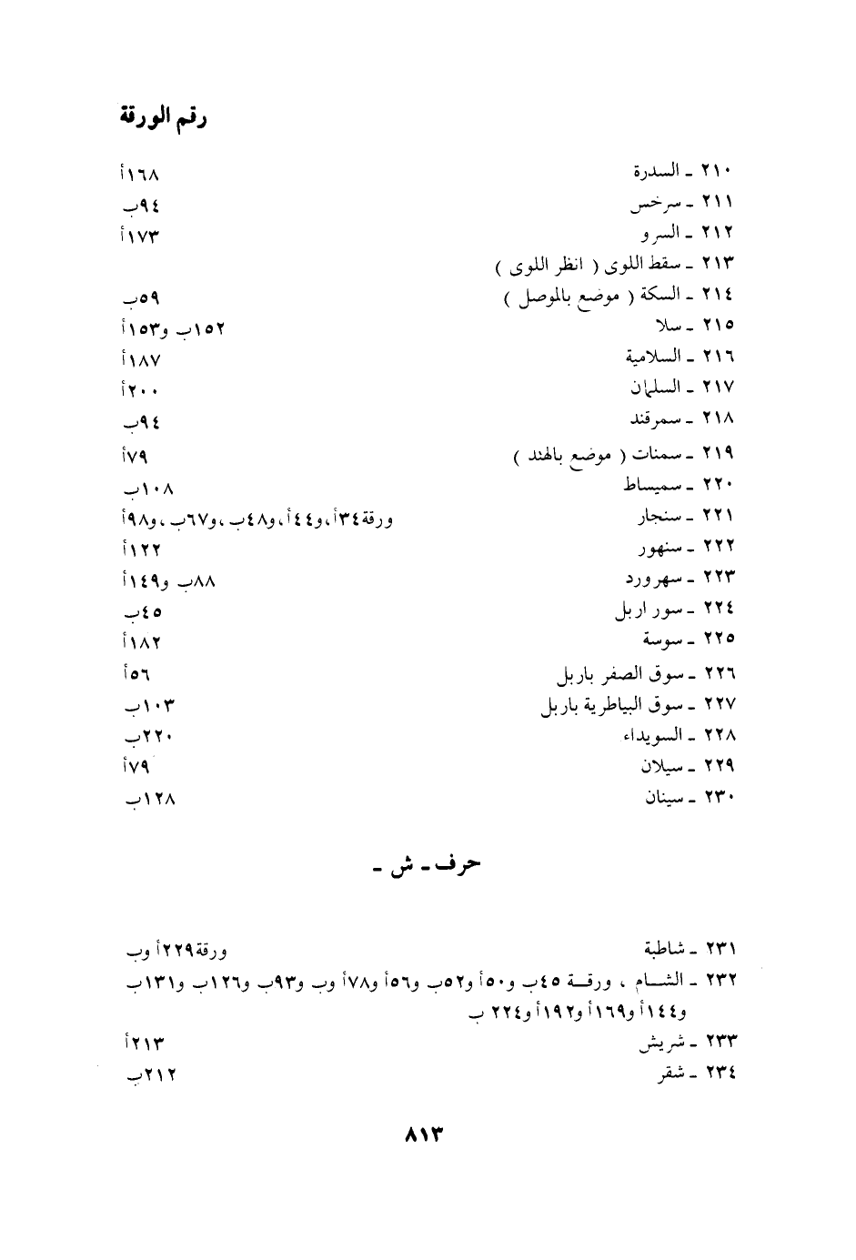 232- الشام، ورقة 45 ب و 50 أو 52 ب و 56 أو 78 أوب و 93 ب و 126 ب و 131 ب و 144 أو 169 أو 192 أو 224 ب