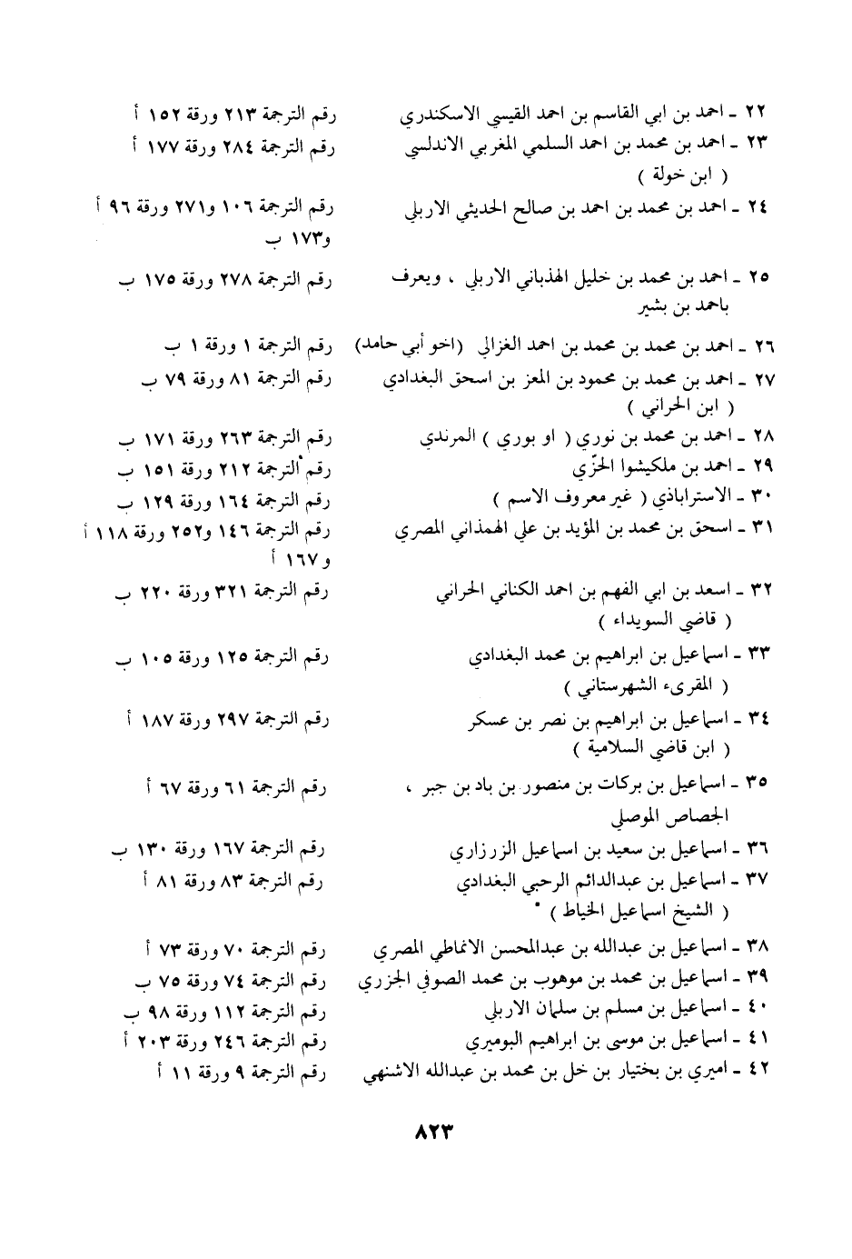 24- أحمد بن محمد بن أحمد بن صالح الحديثي الاربلي رقم الترجمة 106 و 271 ورقة 96 أ