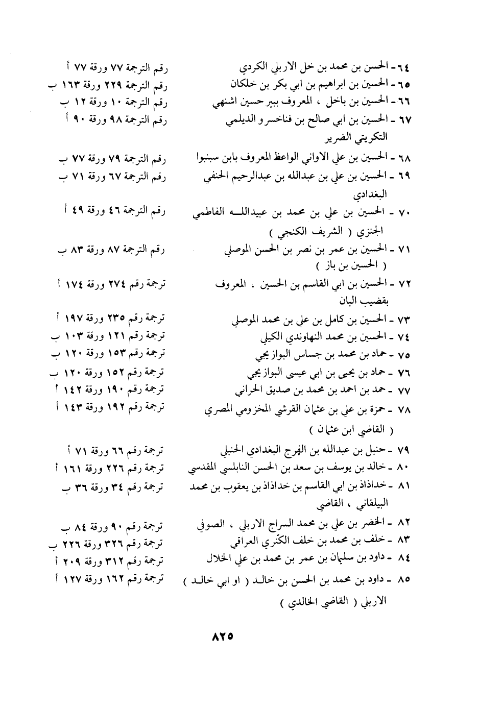 64- الحسن بن محمد بن خل الاربلي الكردي رقم الترجمة 77 ورقة 77 أ