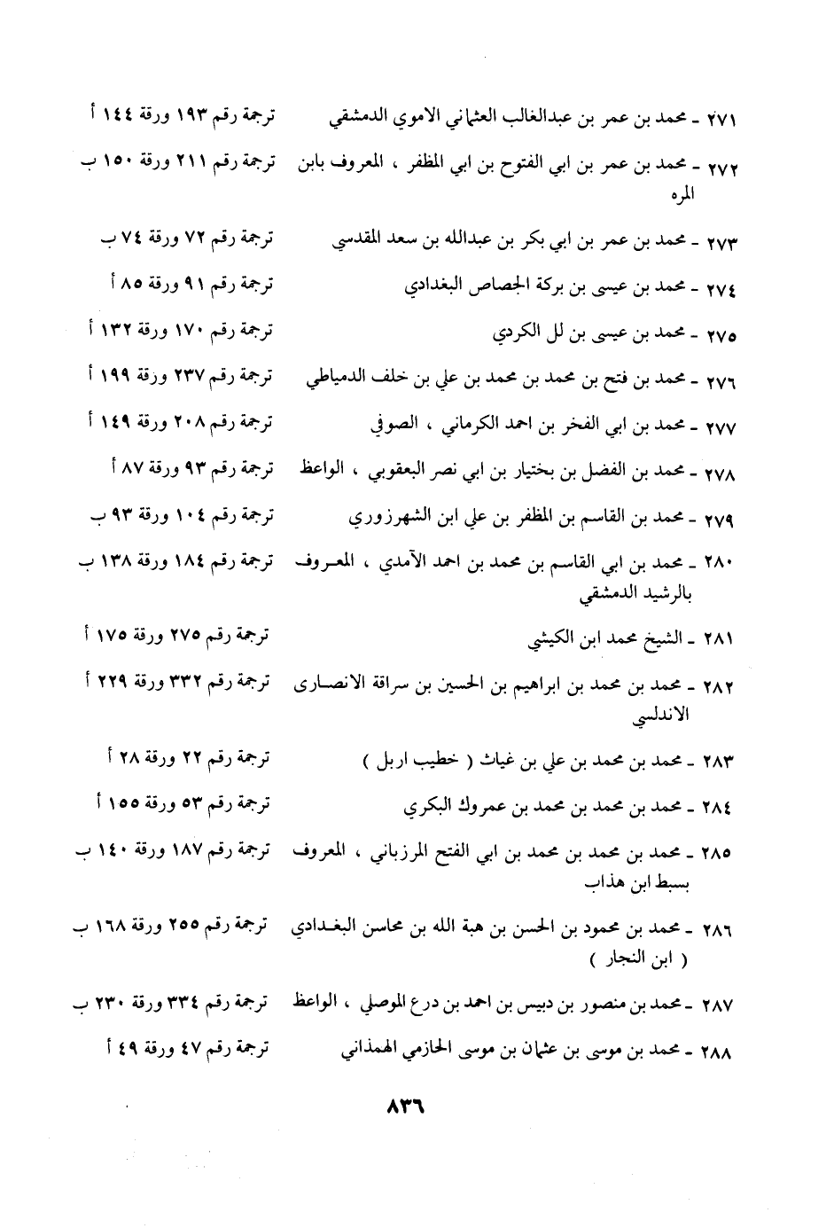 272- مُحَمَّد بْن عُمَر بْن أَبِي الْفُتُوحِ بْن ابي المظفر، المعروف بابن المره ترجمة رقم 211 ورقة 150 ب