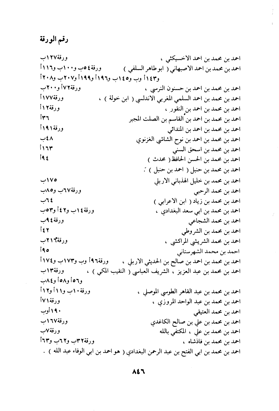 احمد بن محمد بن احمد الاصبهاني (ابو طاهر السلفي) ورقة 54 ب و 100 ب و 116 أو 143 أوب و 145 ب و 196 أو 199 أو 207 ب و 208 أ