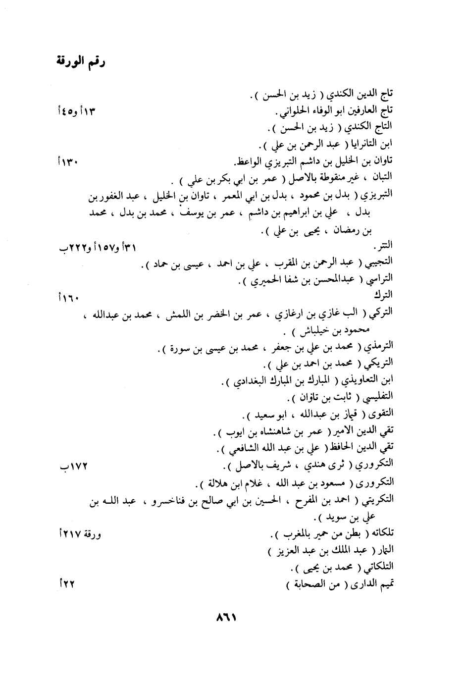 رقم الورقة تاج الدين الكندي (زيد بن الحسن) .