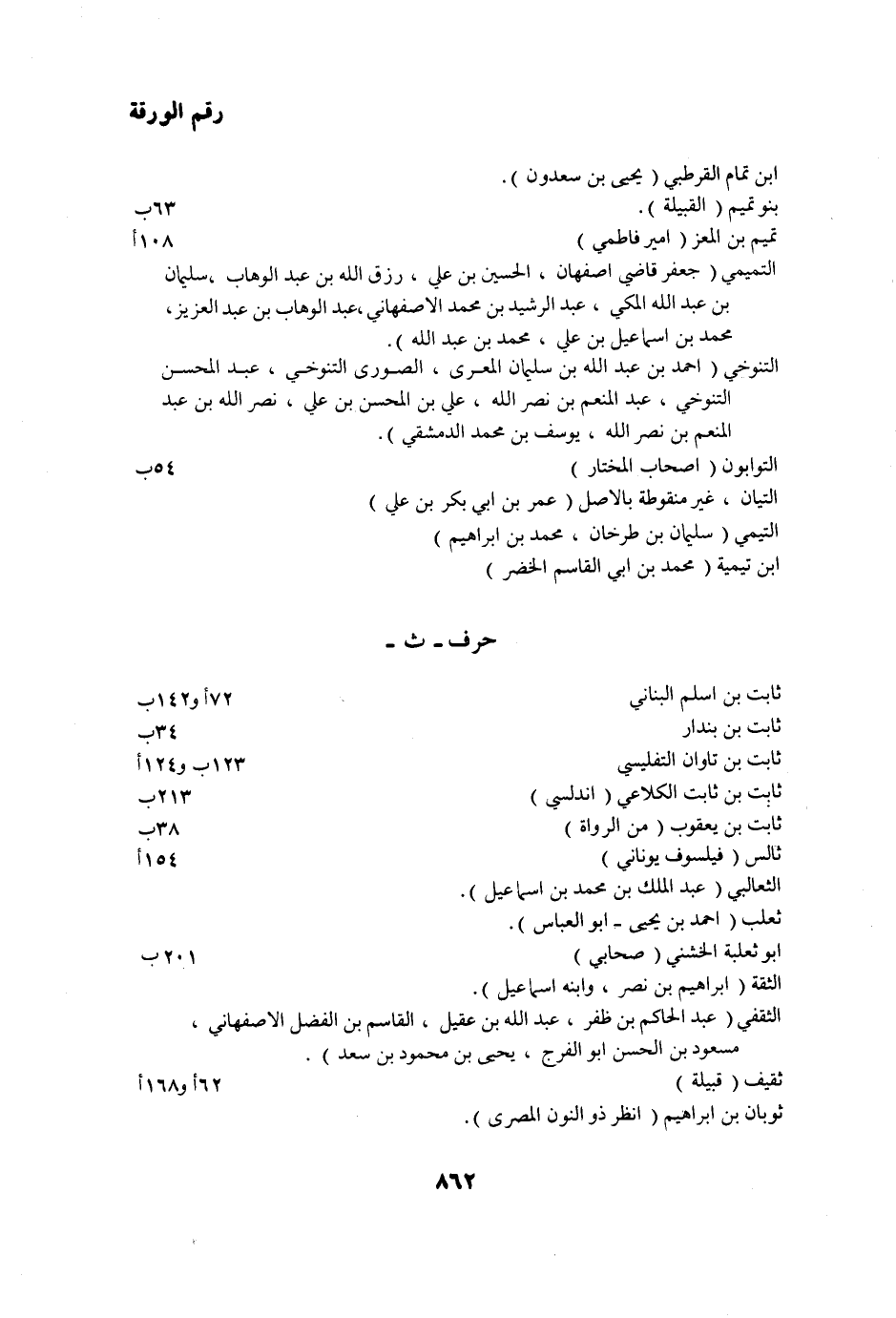 رقم الورقة ابن تمام القرطبي (يحيى بن سعدون) .