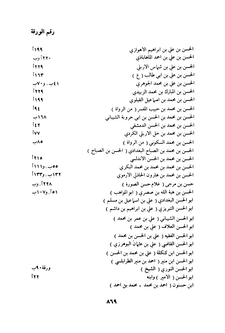 رقم الورقة الحسن بن علي بن ابراهيم الاهوازي 199 أ