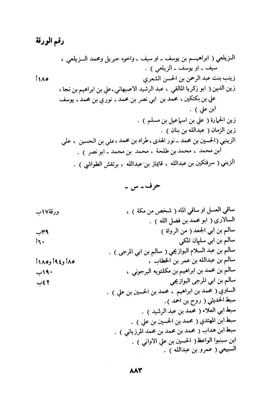 رقم الورقة الزيلعي (ابراهيم بن يوسف- او سيف- واخوه جبريل ومحمد الزيلعي، سيف- او يوسف- الزيلعي) .
