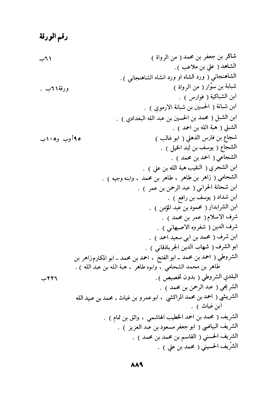 رقم الورقة شاكر بن جعفر بن محمد (من الرواة) 61 ب