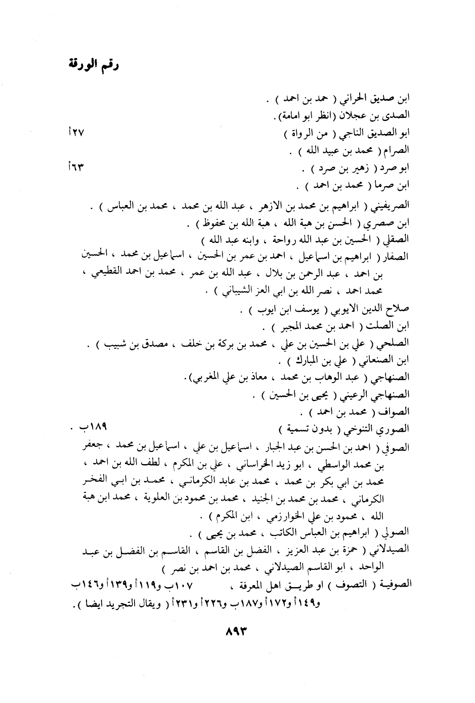 الصوفية (التصوف) او طريق اهل المعرفة، 107 ب و 119 أو 139 أو 146 ب و 149 أو 172 أو 187 ب و 226 أو 231 أ (ويقال التجريد ايضا) .