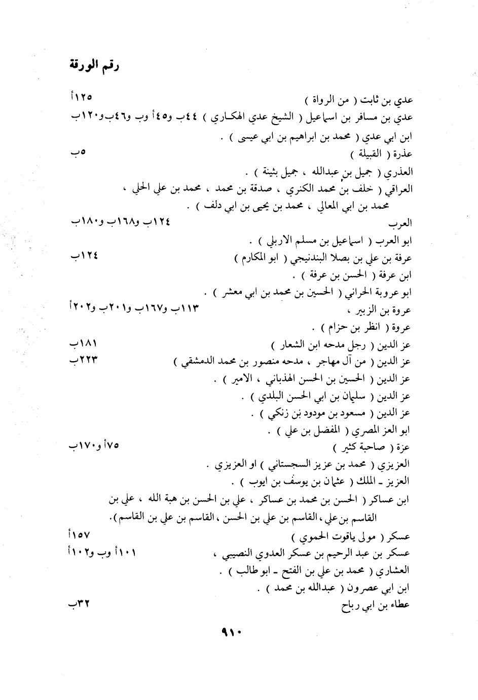 رقم الورقة عدي بن ثابت (من الرواة) 125 أ