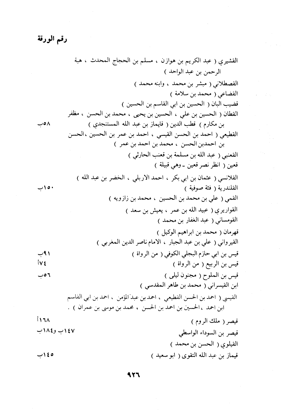 رقم الورقة القشيري (عبد الكريم بن هوازن، مسلم بن الحجاج المحدث، هبة الرحمن بن عبد الواحد)