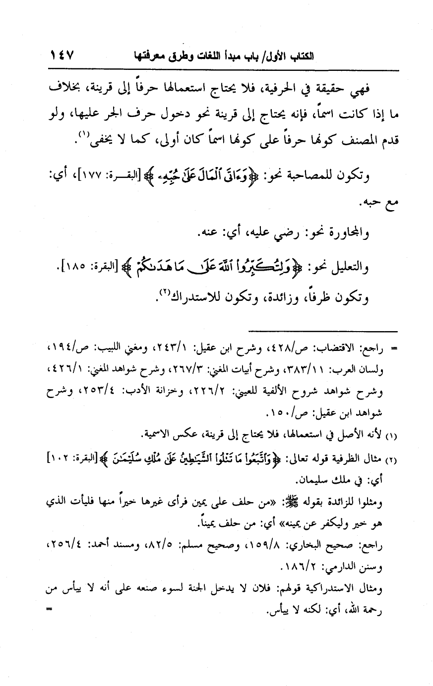 وتكون للمصاحبة نحو: {وَآتَى الْمَالَ عَلَى حُبِّهِ} [البقرة: ١٧٧]، أي: مع حبه.