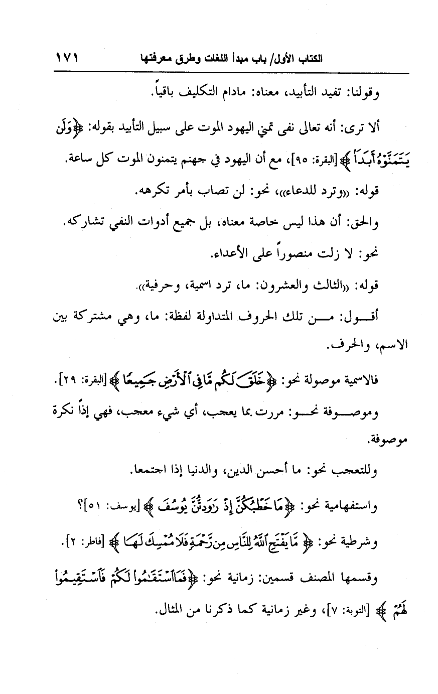 قولِه: "الثالث والعشرون: ما، ترد اسمية، وحرفية".