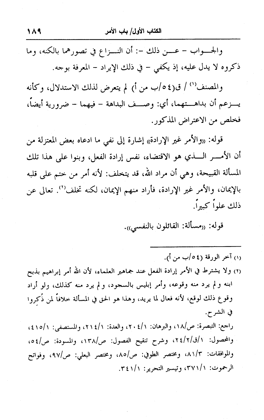 راجع: التبصرة: ص/ ١٨، والبرهان: ١/ ٢٠٤، والعدة: ١/ ٢١٤، والمستصفى: ١/ ٤١٥، والمحصول: ١/ ق ٢/ ٢٤، وشرح تنقيح الفصول: ص/ ١٣٨، والمسودة: ص/ ٥٤، والموافقات: ٣/ ٨١١، ومختصر الطوفي: ص/ ٨٥، ومختصر البعلي: ص/ ٩٧، وفواتح الرحموت: ١/ ٣٧١، وتيسير التحرير: ١/ ٣٤١.