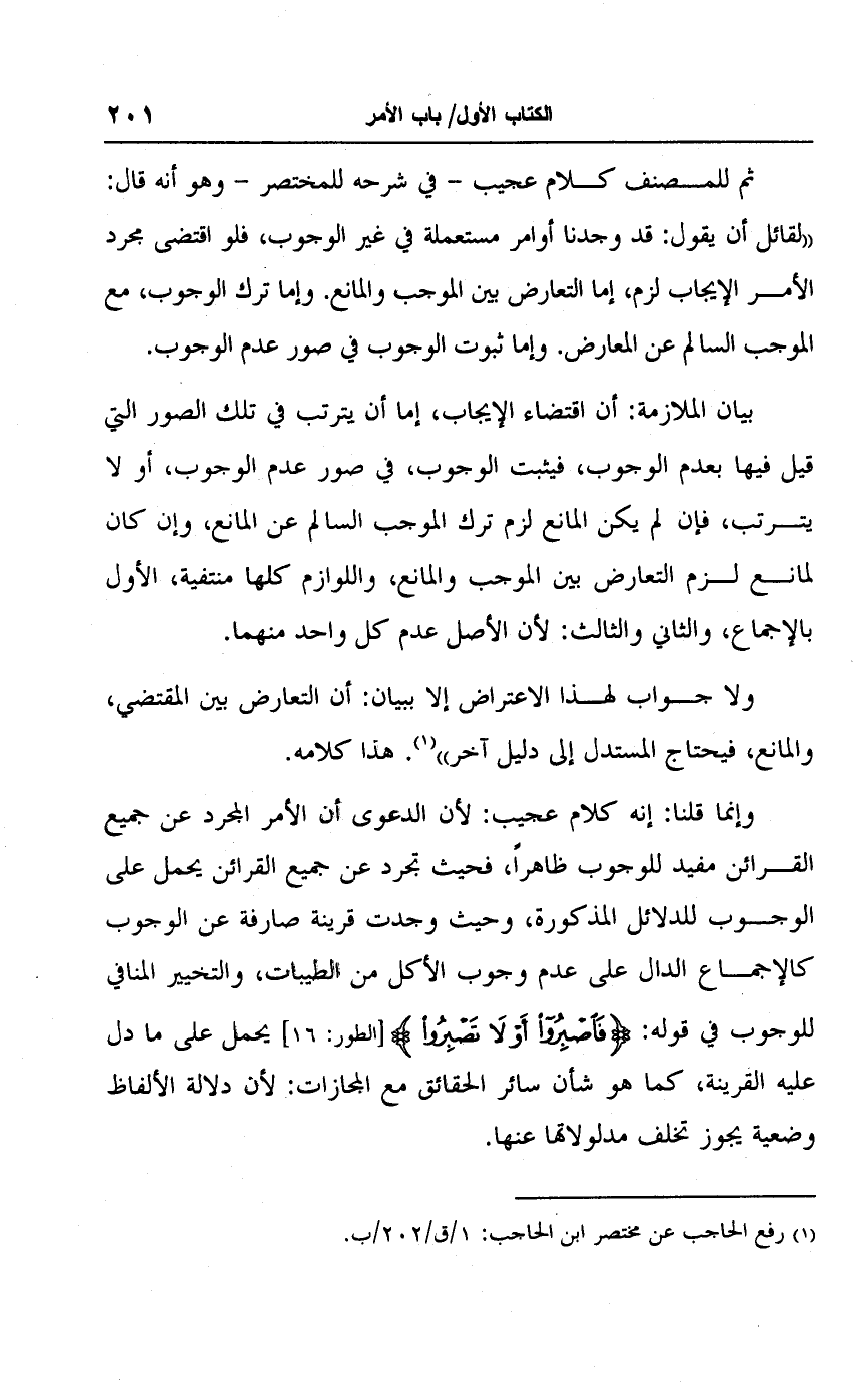 (١) رفع الحاجب عن مختصر ابن الحاجب: ١/ ق/ ٢٠٢/ ب.
