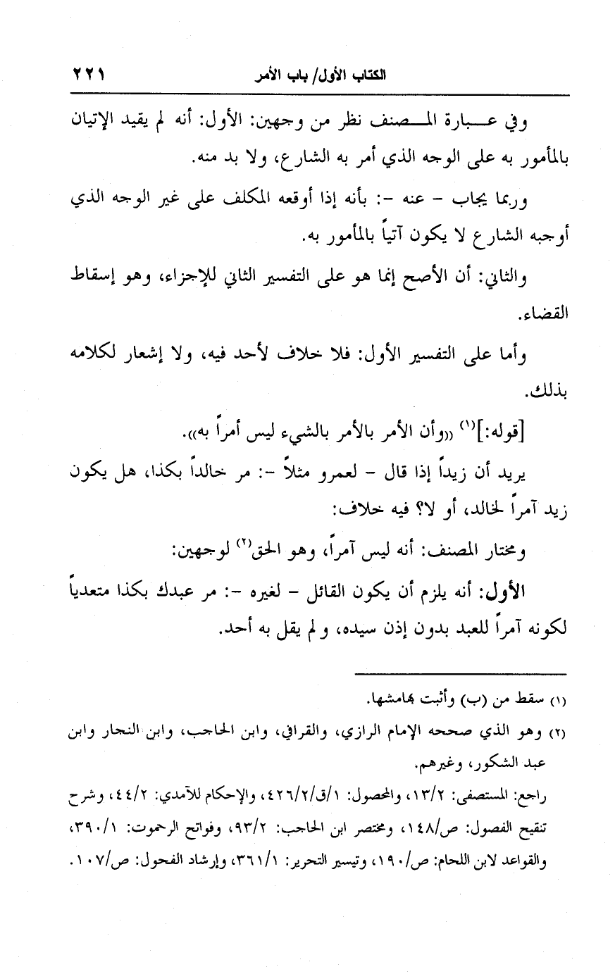 (٢) وهو الذي صححه الامام الرازي، والقرافي، وابن الحاجب، وابن النجار وابن عبد الشكور، وغيرهم.