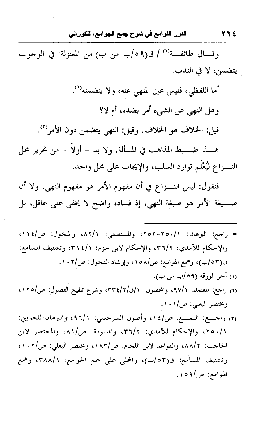 (٢) راجع: المعتمد: ١/ ٩٧، والمحصول: ١/ ق/ ٢/ ٣٣٤، وشرح تنقيح الفصول: ص/ ١٢٥، ومختصر البعلي: ص/ ١٠١.