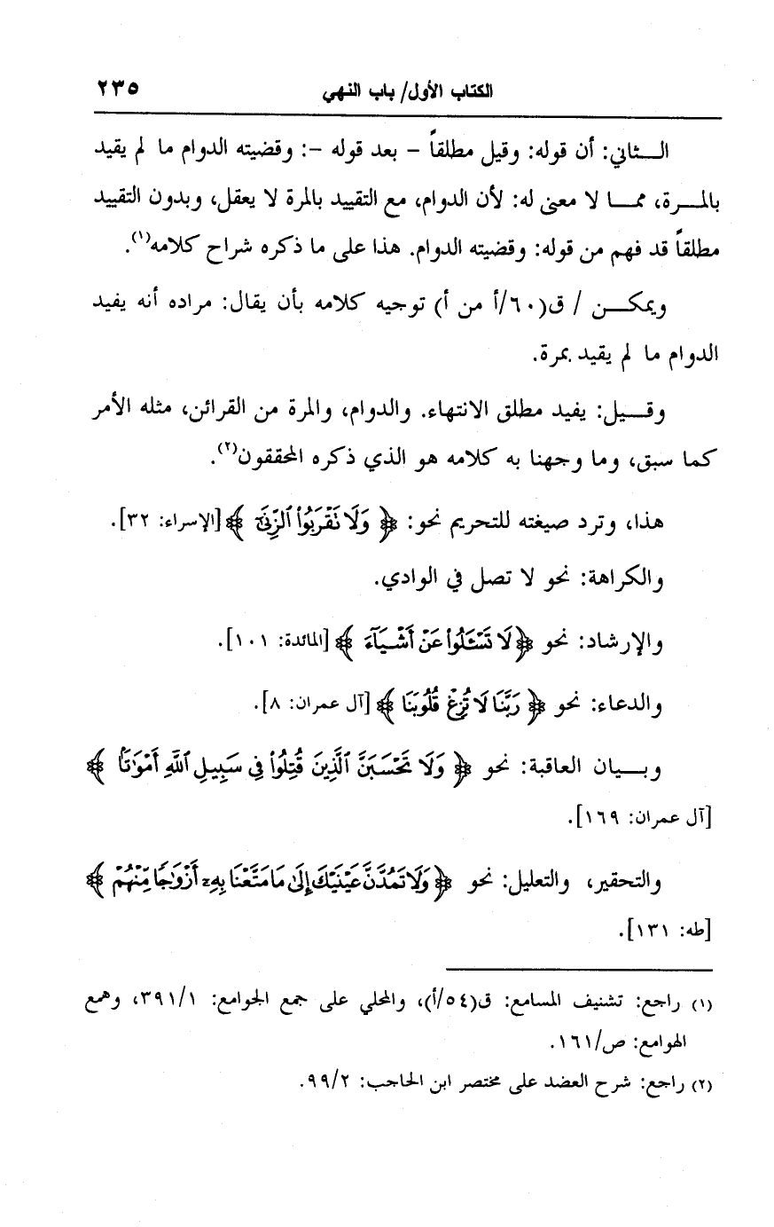 هذا، وترد صيغته للتحريم نحو: {وَلَا تَقْرَبُوا الزِّنَا} [الإسراء: ٣٢].