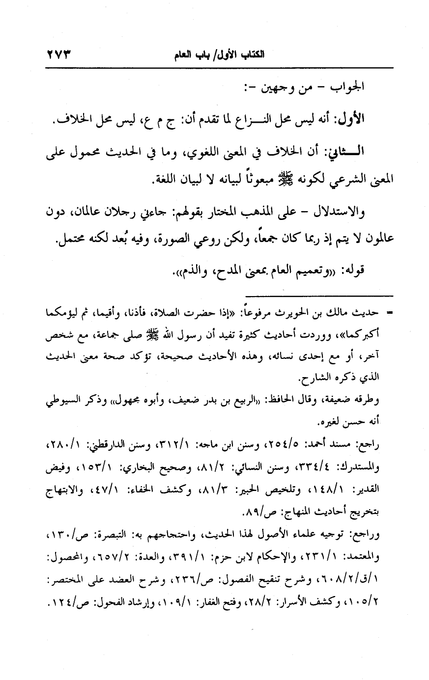 الثاني: أن الخلاف في المعنى اللغوي، وما في الحديث محمول على المعنى الشرعي لكونه - صلى الله عليه وسلم - مبعوثًا لبيانه لا لبيان اللغة.