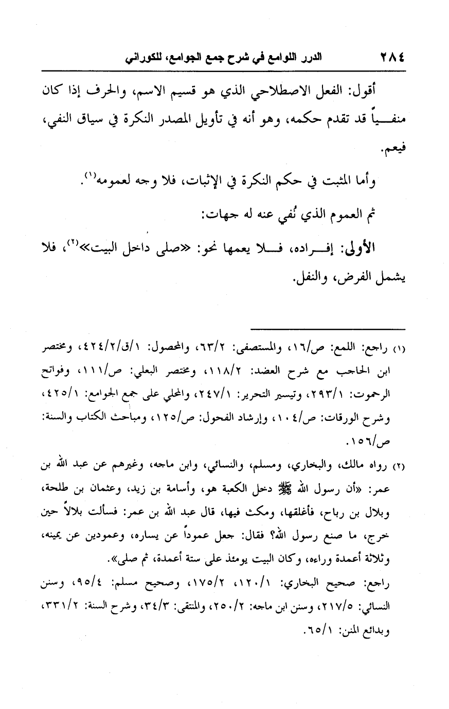 (١) راجع: اللمع: ص/ ١٦، والمستصفى: ٢/ ٦٣، والمحصول: ١/ ق/ ٢/ ٤٢٤، ومختصر ابن الحاجب مع شرح العضد: ٢/ ١١٨، ومختصر البعلي: ص/ ١١١، وفواتح الرحموت: ١/ ٢٩٣، وتيسير التحرير: ١/ ٢٤٧، والمحلي على جمع الجوامع: ١/ ٤٢٥، وشرح الورقات: ص/ ١٠٤، وإرشاد الفحول: ص/ ١٢٥، ومباحث الكتاب والسنة: ص/ ١٥٦.