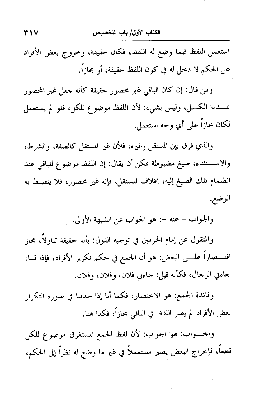 ومن قال: إن كان الباقي غير محصور حقيقة كأنه جعل غير المحصور بمثابة الكل، وليس بشيء: لأن اللفظ موضوع للكل، فلو لم يستعمل لكان مجازًا على أي وجه استعمل.