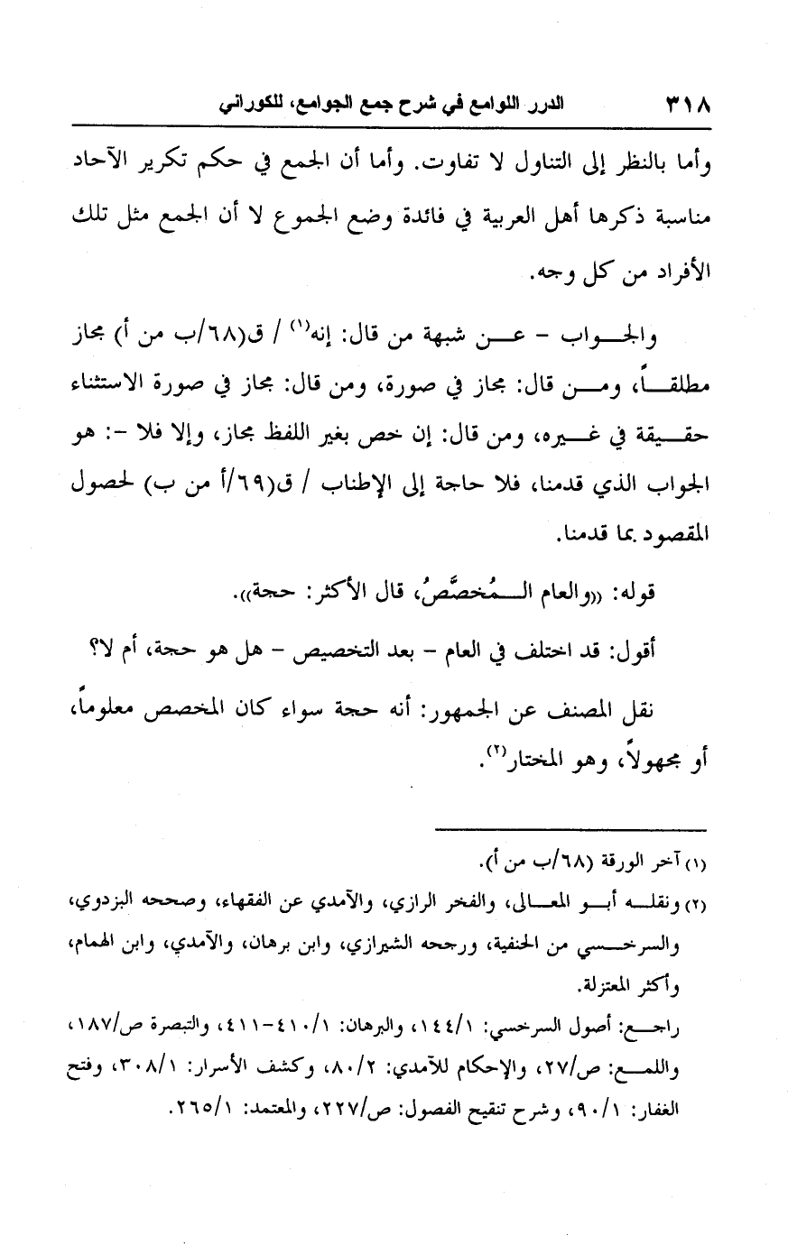 راجع: أصول السرخسي: ١/ ١٤٤، والبرهان: ١/ ٤١٠ - ٤١١، والتبصرة ص/ ١٨٧، واللمع: ص/ ٢٧، والإحكام للآمدي: ٢/ ٨٠، وكشف الأسرار: ١/ ٣٠٨، وفتح الغفار: ١/ ٩٠، وشرح تنقيح الفصول: ص/ ٢٢٧، والمعتمد: ١/ ٢٦٥.