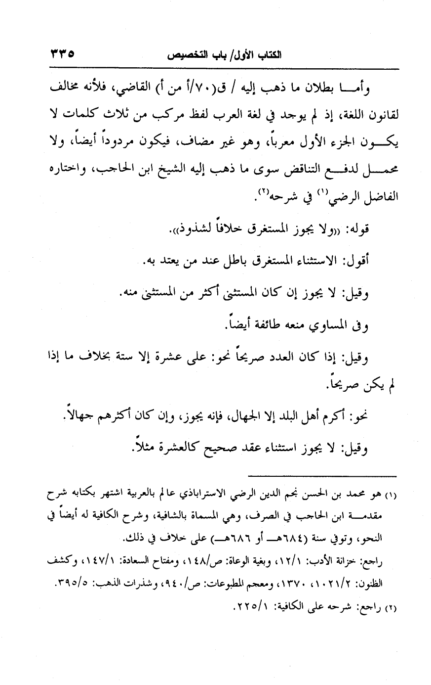 (٢) راجع: شرحه على الكافية: ١/ ٢٢٥.